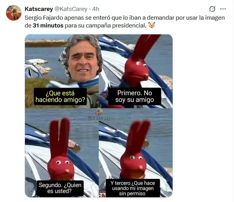 En las últimas horas se generó una fuerte controversia entre el programa infantil chileno 31 Minutos y el aspirante a la presidencia Sergio Fajardo, luego de que este publicara un carrusel promocionando su “Plan Guardián”. En la pieza gráfica se utilizaron personajes icónicos como Tulio Triviño, Juan Carlos Bodoque, Mario Hugo y Juanín Juan Harry, sin autorización de sus creadores.
